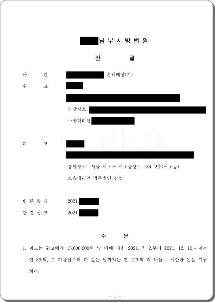 원고는 피고를 상대로 소외인과 피고의 부정행위로 인해서 부부의 공동생활이 침해되었고 배우자로서의 권리를 침해당했다는 것을 근거로 3,000만 원을 청구하였습니다. 피고의 소송대리인은 소외인과 피고의 부정행위는 인정하지만, 아직은 원고와 소외인의 혼인관계가 유지되고 있고, 혼인관계가 파탄에 이르렀다고 볼 만한 자료가 없는 점, 소외인에 비하여 피고가 더 적극적으로 부정행위를 주도하거나 관계 해소를 적극적으로 막는 등 주도적·적극적인 역할을 수행하였다는 자료 없는 점, 피고가 잘못을 인정하고 원고에게 사죄하면서 소외인과 다시는 만나지 않겠다고 약속하는 점 등을 들어 원고의 청구는 과다하다고 맞섰습니다.