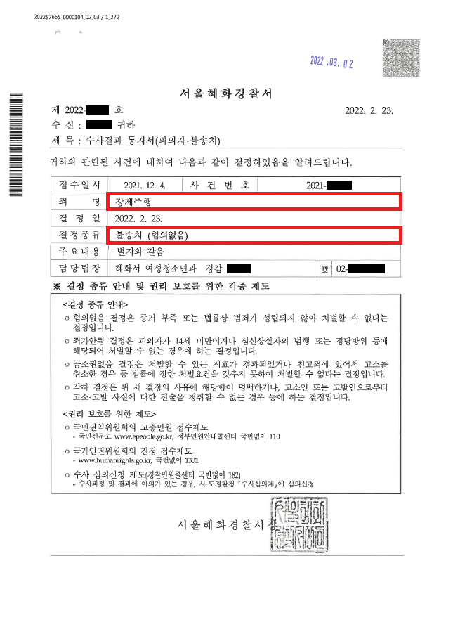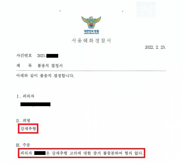 이러한 저의 조력을 바탕으로 A씨는 '불송치(혐의없음)' 결정을 받음으로써 억울한 누명에서 벗어날 수 있었습니다.