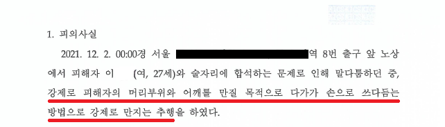 A씨는 일행들 사이의 말다툼이 더 큰 싸움으로 번지는 것을 막기 위하여 적극적으로 중재하고 분위기가 정리되자 B씨에게 다가가 일행의 잘못에 대해 사과하면서 B씨의 머리와 어깨를 쓰다듬은 것일 뿐이었는데, 갑자기 B씨가 강제추행 혐의로 고소를 하였다고 하니 너무나도 당혹스러웠습니다.