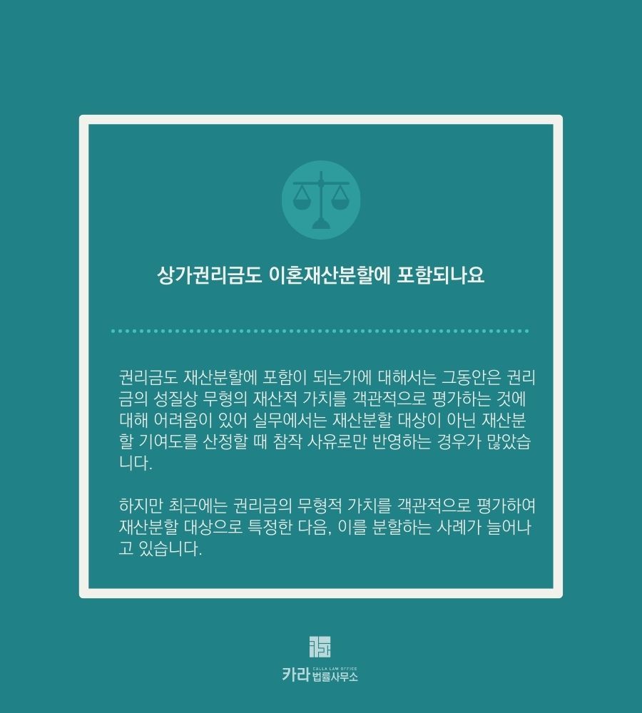 이번 시간에는 상가 권리금도 재산분할 대상이 되는지, 재산분할 대상이 된다면 권리금 산정은 어떻게 하고 어떤 비율로 분할하게 되는지 알아보도록 하겠습니다.