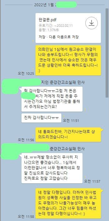 그땐 돈이 없어 변호사님 도움을 받지 못해 상대가 대형로펌을 써 무혐의를 받았습니다.