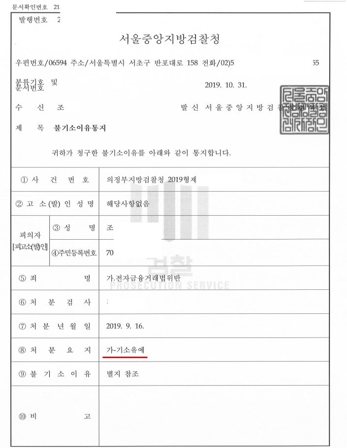 * 사건번호 : 의정부지방검찰청 2019형제*****
