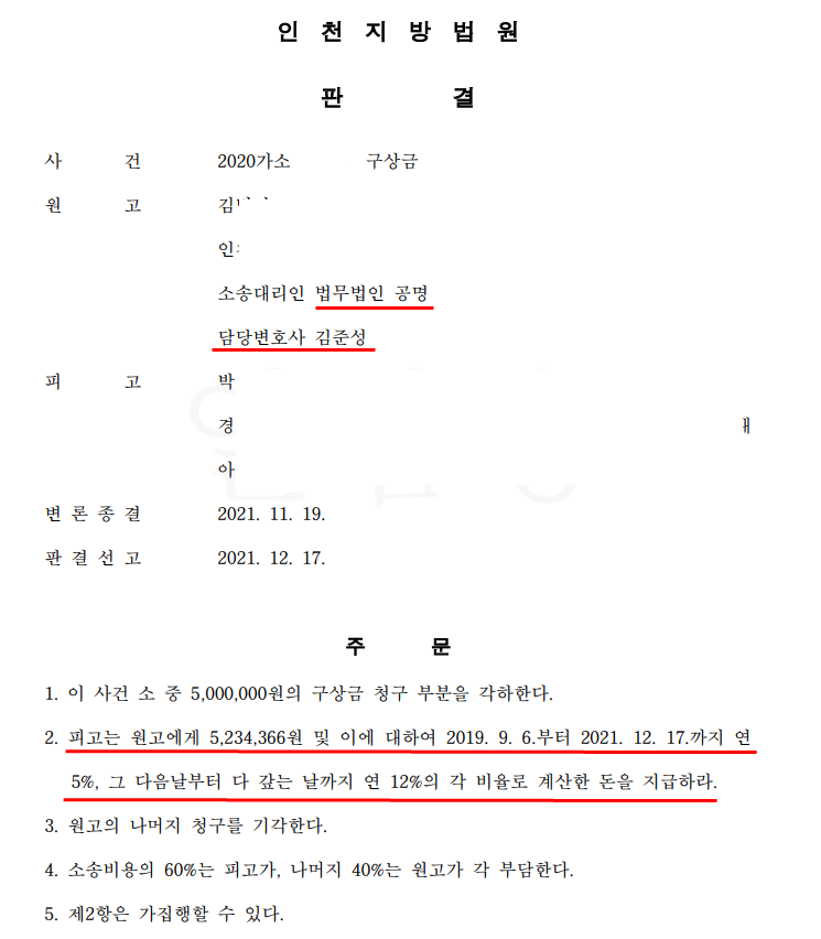 인천지방법원에서는 원고에게 일부 승소 판결을 선고하였습니다.