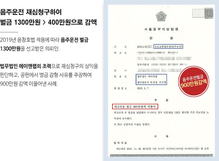 ![[교통범죄] 음주운전 재심청구하여 벌금 900만원 감액 성공](/_next/image?url=https%3A%2F%2Fd2ai3ajp99ywjy.cloudfront.net%2Fuploads%2Ftitleimage%2Foriginal%2F5b5edead4b55d37a3dfad088-original.jpg&w=3840&q=75)
