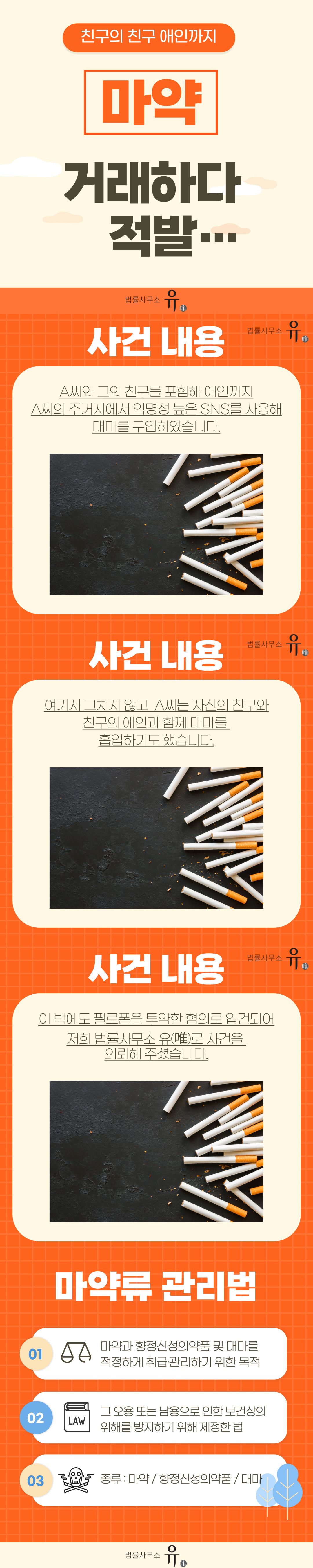 의뢰인은 지인들과 함께 일명 ‘드립’방식으로 대마를 전달받아 매수하기로 마음먹고 서울 모 소재 불상의 장소 등에서 100여 회에 걸쳐 대마를 매수한 혐의로 입건되어 저희 사무실에 사건을 의뢰하셨습니다.
