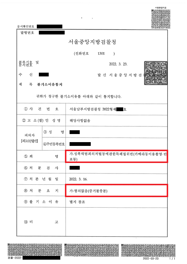 이러한 저의 조력을 바탕으로 A씨는 당연히 처벌을 받게 될 것이라고 생각하고 있었던 데다가 사건이 검찰로 송치될 정도로 혐의가 인정될 가능성이 매우 높았음에도 불구하고 '혐의없음(증거불충분)' 처분을 받음으로써 억울하게 성범죄자가 될 위기에서 벗어날 수 있었습니다.