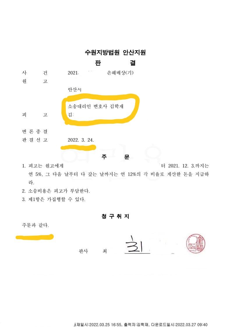 이상 전부승소 판결을 받고, 매우 기쁜 김학재 변호사가 작성했습니다.