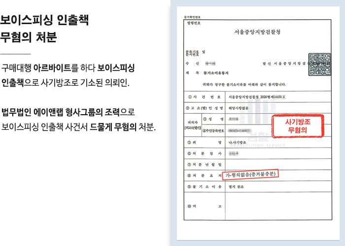 최근 보이스피싱 인출책인지 몰랐다고 하더라도 대부분 기소를 하고, 이후 징역형(집행유예 등)등의 처분을 받는 것이 일반적입니다.
