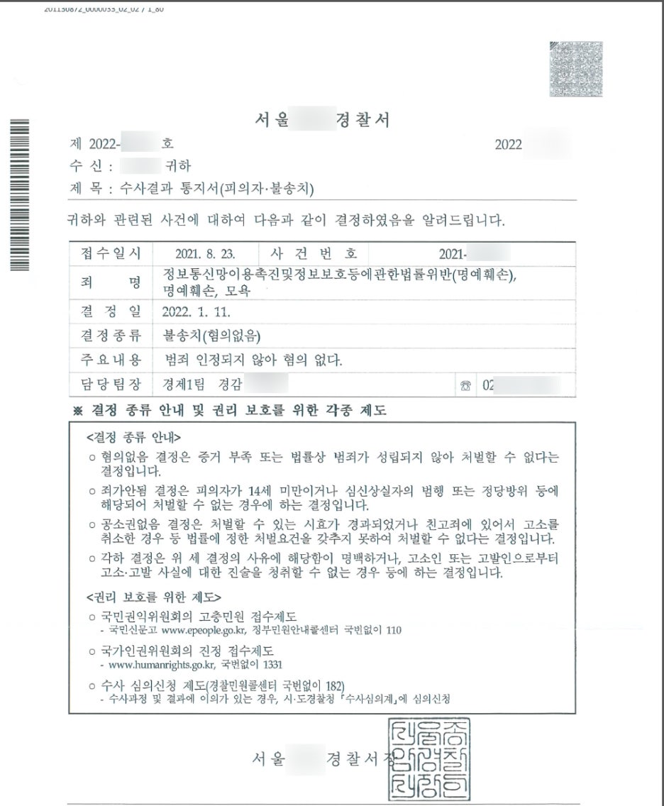 ● 참고자료의 제출 - 혐의 판단에 도움이 되는 유사 사건의 수사결과통지서 제출