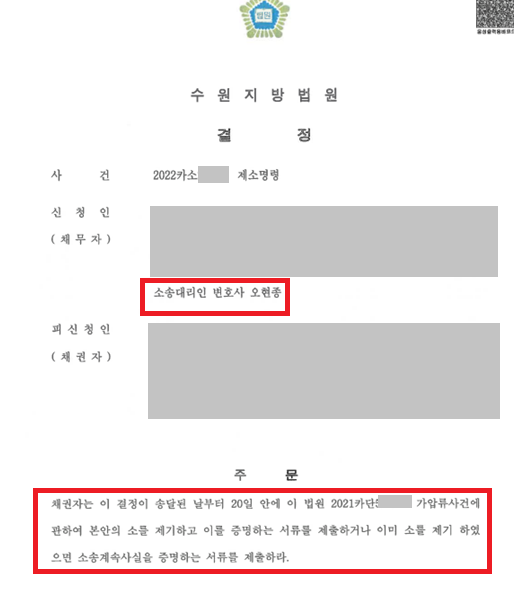 이러한 제소명령을 통해 가압류를 최대한 신속하게 해제할 수 있습니다.