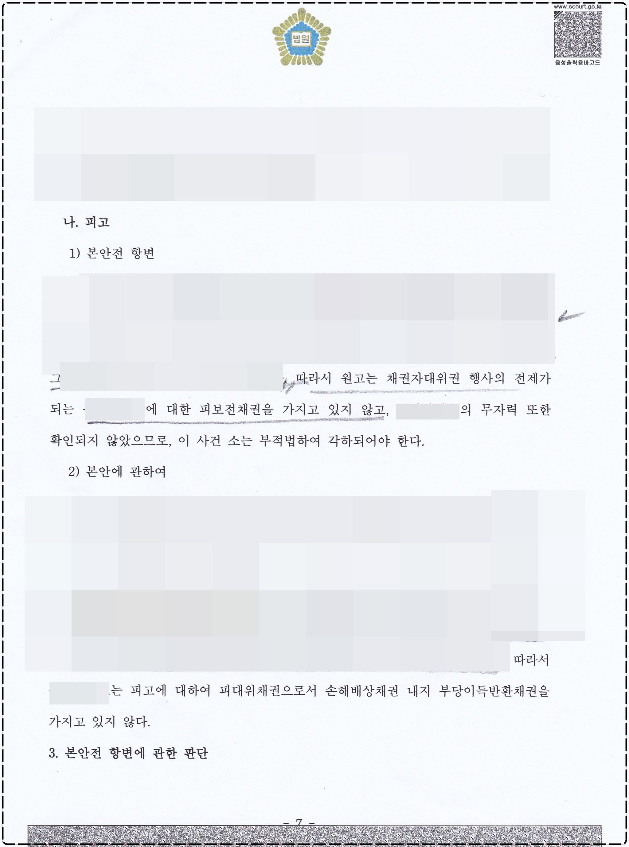 5. 몇 년 동안의 심리 끝에 법원은 원고 주장의 피보전채권 부존재를 이유로 각하하면서, 친절히 본안에 관한 가정적 판단까지 나아가 설령 피보전채권의 존재를 인정할 수 있더라도 여러사정상 법인이 피고에게 부당이득반환채권이나 손해배상채권을 가지는 것은 아니라고 판단하였습니다.