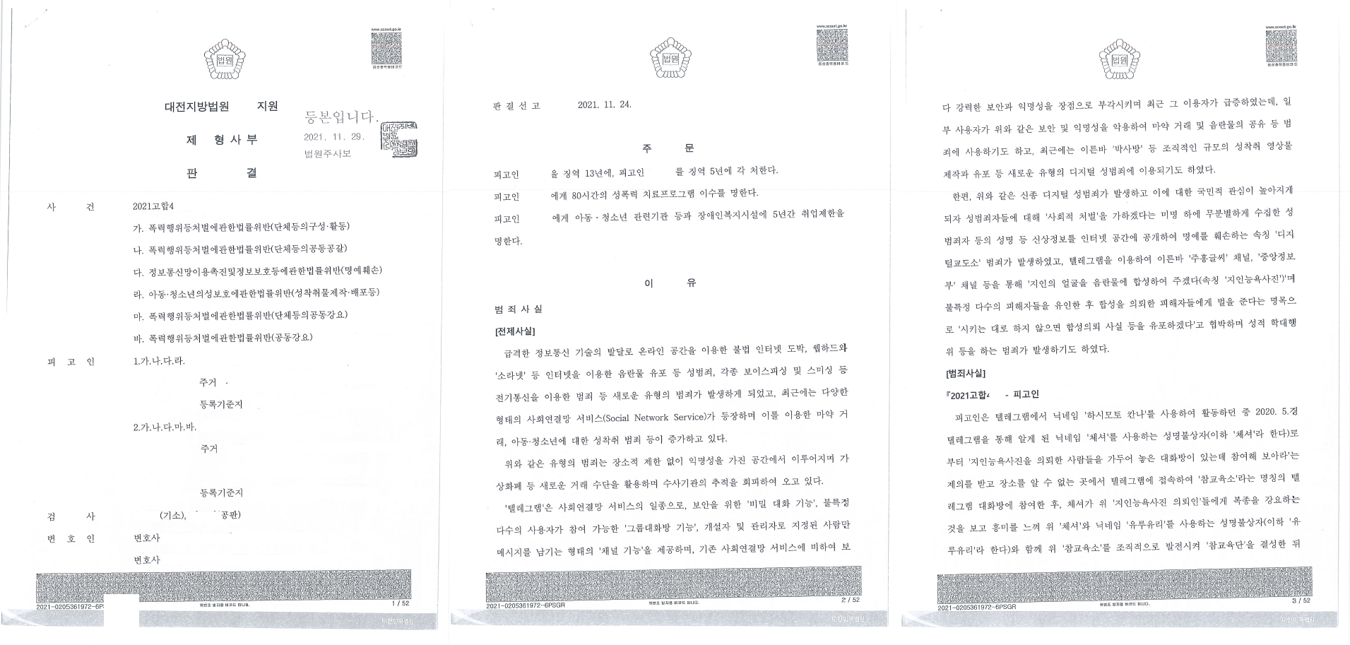 최근 받은 아청법 성착취물 소지죄는 21년 1월 23일 디스코드에 있었던 '하은이네 은꼴 저장소'를 운영하는 사람에게 온문으로 구매하여 압수수색이 이루어졌던 사안입니다. 하은이네 은꼴 저장소는 다른 금전구매 사안과 달리 판매물에 아청물이 아닌 것이 없어서 변호에 큰 어려움이 있었던 것이 사실입니다. 작년과 재작년에 이루어진 금전구매 사건의 경우 판매자가 판매한 영상물에 아청물이 아닌 것이 섞여 있었습니다. 대부분의 사람들이 짐작은 하고 있을 것이나 제 경우 다수의 사건이 발생한 주요 판매자가 판매한 영상물의 목록이 무엇이었고 그 내용이 어떠한 것이었는지 제 머리속에 깡그리 외워버렸기 때문에 변호에 큰 어려움이 없었습니다. 물론 제가 직접 본 적은 없으나 다수의 사건을 맡고 있어 여러 명에게 중복 확인할 수 있는 여건이 되었습니다. 어떠한 영상물이 있었는지 그 영상물의 내용, 즉 등장인물이 몇 명인지 장소는 모텔인지 집인지, 옷을 입고 있는 장면이 나오는지 내용을 모두 크로스체크해서 확인 후 모두 외워버렸기 때문에 변호함에 별 어려움이 없었고 실제 대다수 무혐의를 받아주었습니다.