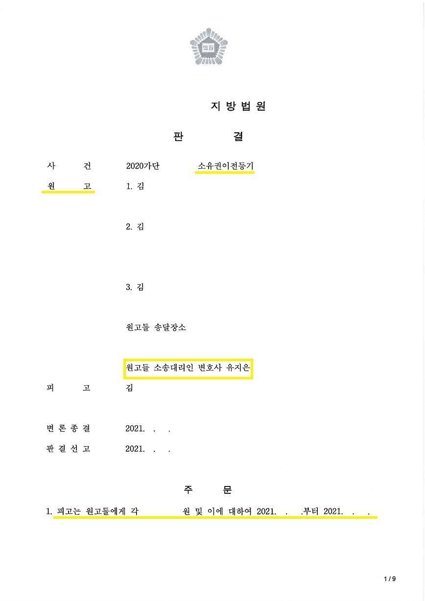 유류분 반환은 원물반환이 원칙이지만 의뢰인들은 부동산 지분이 아닌 금전으로 받아오기를 희망하였고, 이에 상대방이 증여받은 각 부동산 시가 감정을 통하여 금전으로 청구취지를 변경하였으며, 결국 의뢰인들은 원하는 대로 상대방으로부터 각 유류분 부족액에 해당하는 금원을 지급받으며 성공적으로 마무리가 된 사안입니다.