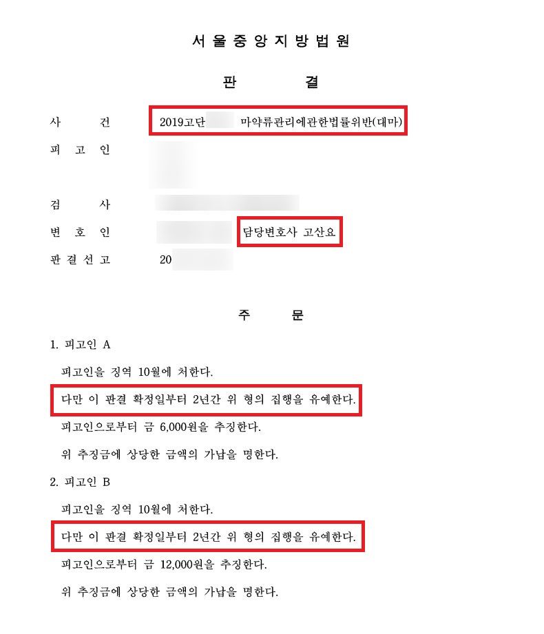 결국, 의뢰인들은 징역 10월에 집행유예 2년의 판결을 받을 수 있었습니다. 아직도 의뢰인의 이름이 기억이 나는데요. 사업이 잘 진행되고 있는지 가끔 궁금합니다. 비자갱신도 잘 이뤄졌길 바라며 아내와 함께 한국에서 행복한 삶을 살아가기를 바랍니다.