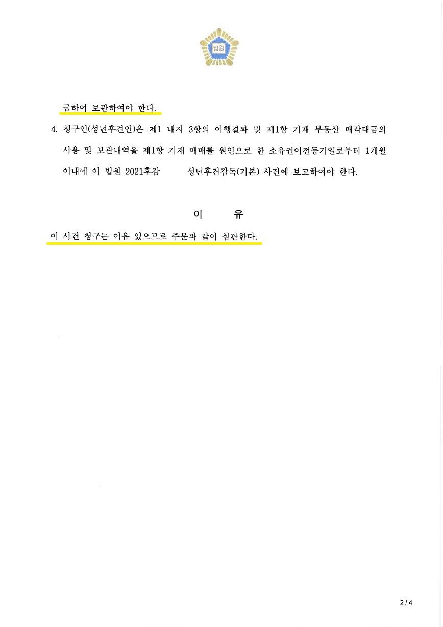 성년후견인으로 선임된 후에도 피성년후견인의 재산을 처분하기 위해서는 별도로 법원에 성년후견인의 임무 수행을 위하여 필요한 처분명령을 청구하여 허가를 받아야 하는데, 의뢰인은 성년후견개시 심판 청구를 한 날로부터 6개월 안에 원하는 대로 어머니의 성년후견인으로 선임되었을 뿐만 아니라, 어머니 소유의 각 부동산을 매각하는 것을 허가받아 그 돈으로 의뢰인이 우선적으로 지출한 약 3억 원 상당의 비용을 정산받고 향후 어머니의 병원비로 사용할 금원을 마련함으로써 성공적으로 마무리가 된 사안입니다.