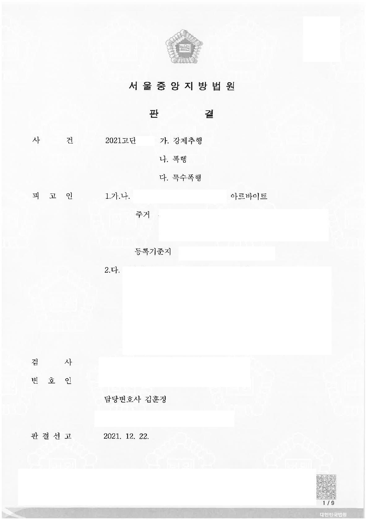 본 사안은 클럽 내부에서 술을 마시고 춤을 추고 있던 의뢰인이 건물 기둥에 몸을 기댄 채 휴대전화를 보고 있는 피해자에게 다가가 갑자기 왼손으로 피해자를 끌어안고 오른손으로 피해자의 가슴을 만져 피해자를 강제로 추행하고, 이에 항의하는 피해자에게 침을 뱉어 폭행하였다는 공소사실로 기소된 사안입니다.