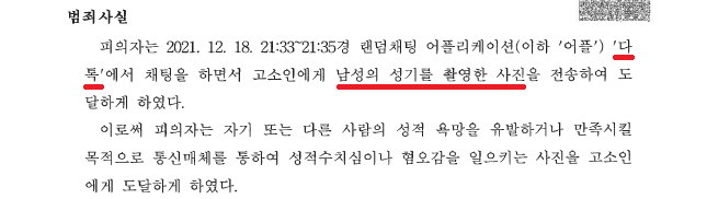 그런데 얼마 뒤, A씨는 경찰로부터 "B씨가 '다톡'에서 A씨로부터 성기 사진을 전송받고 성적 수치심을 느꼈다며 고소를 하여 조사를 받아야 한다"라는 전화를 받았습니다.