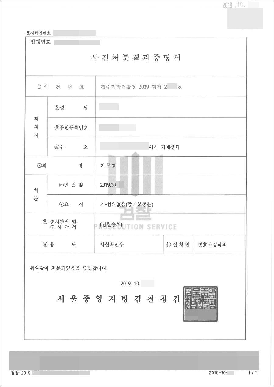 이런 변호인의 조력으로 의뢰인은 무고 혐의에 대해 혐의없음 처분을 받았습니다.