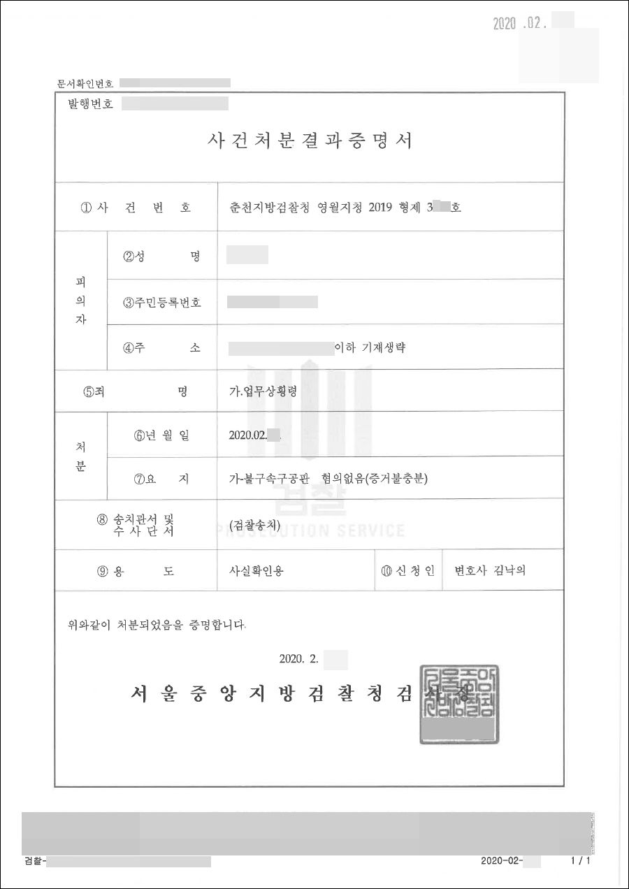 이러한 법승 변호인의 조력으로 결국 이 사건은 재차 무혐의 처분을 받았습니다.
