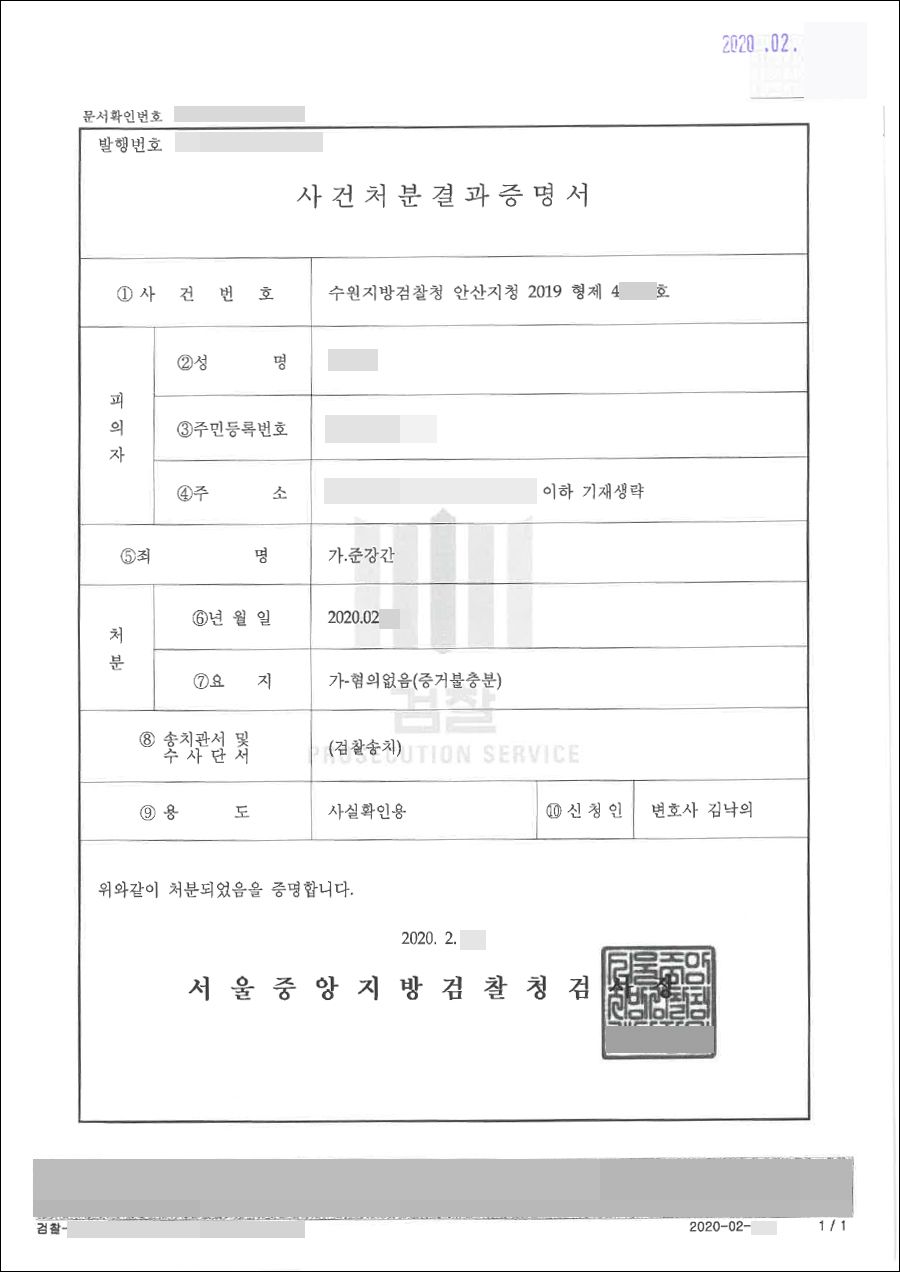 이러한 법승 변호인의 조력으로 결국 이 사건은 혐의없음(증거불충분) 처분이 내려졌습니다.로톡의 모든 콘텐츠는 저작권법의 보호를 받습니다.