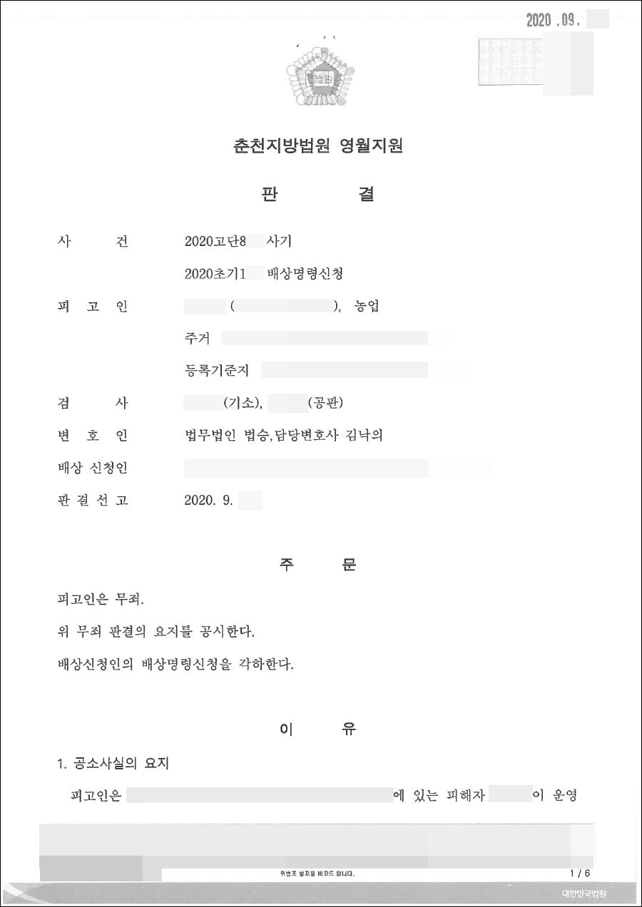 이러한 법승 변호인의 조력으로 의뢰인은 사기 혐의에 대해 무죄 판결을 선고받았습니다.