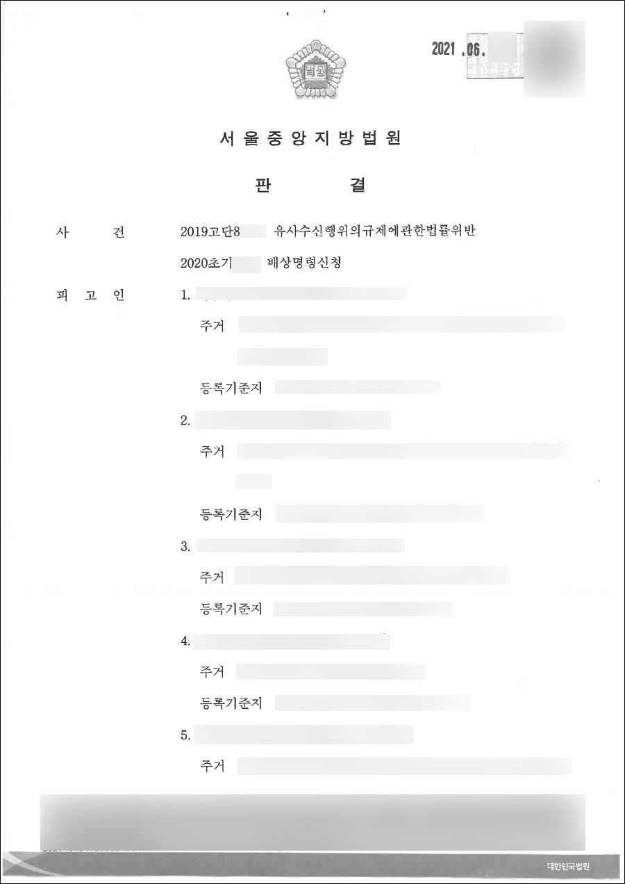 본 사건은 의뢰인이 타인과 공모하여 법령에 의한 인허가를 받지 않고 불특정 다수인으로부터 자금을 조달하는 것을 업으로 하기 위해 장래에 출자금의 전액 또는 이를 초과하는 금액을 지급할 것을 약정하고 출자금을 지급받았음을 이유로 유사수신행위의규제에관한법률위반에 해당함을 이유로 공소제기 되었습니다.