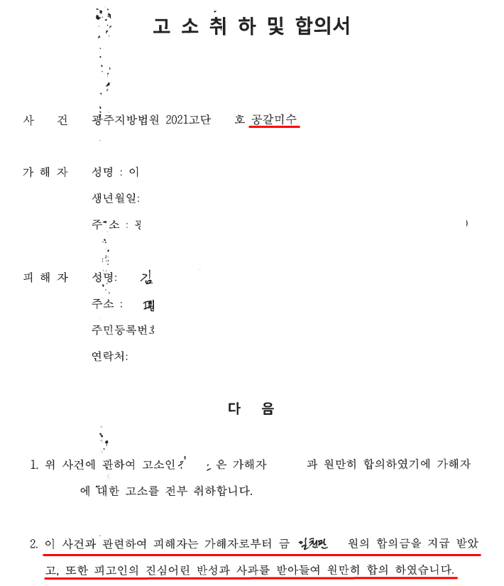 [공갈미수 등 고소 대리] : 김준성 변호사의 도움으로 합의를 통한 피해 회복