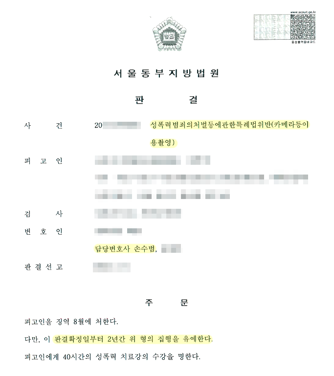 항상 의뢰인과 소통하며 든든한 조력자가 되어 드리기 위해 노력하는 성범죄 전문 변호사 손수범 변호사의 카메라등이용촬영죄 성공사례를 전해드렸습니다.