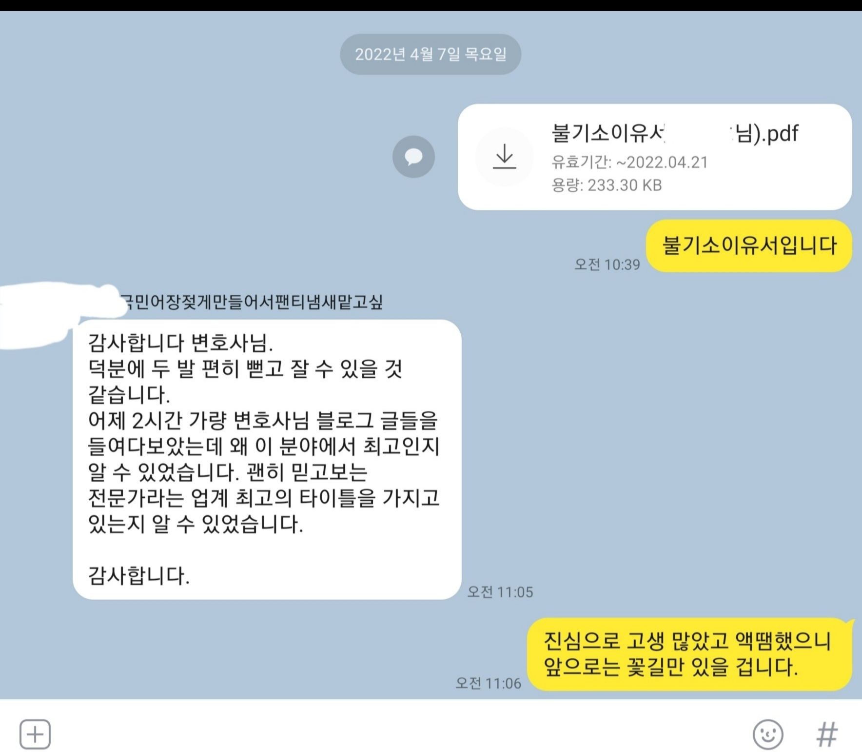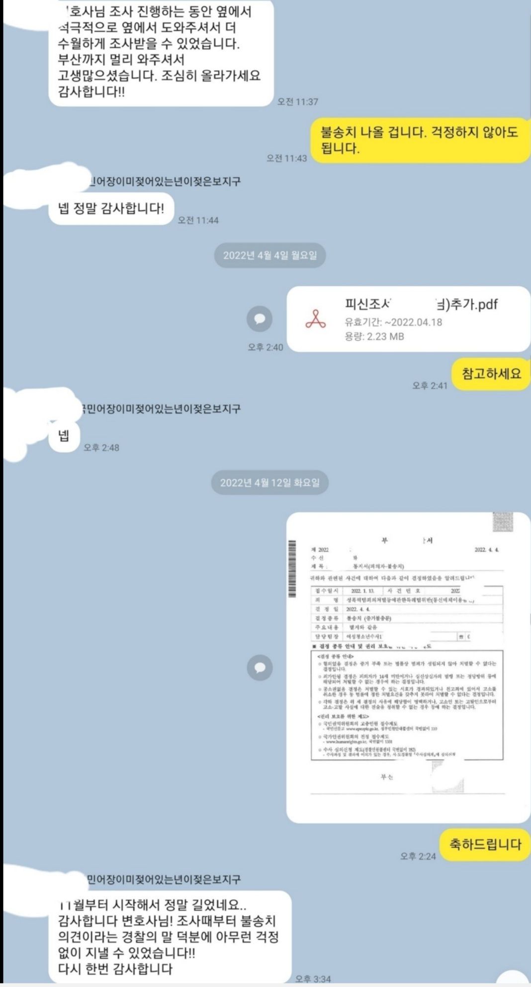 무혐의가 가능하다고 판단하여 사건을 수임하였고 충실한 의견서를 미리 제출하고 최선을 다하여 변호하였습니다. 결과적으로 검사님으로부터 교육받겠냐는 연락을 받아 의뢰인이 저에게 연락이 왔습니다.