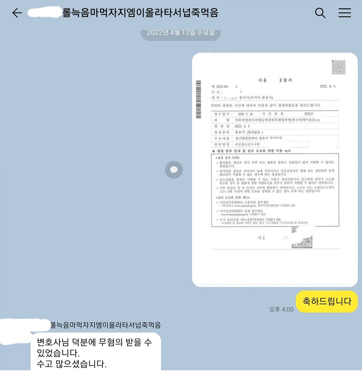 오늘 통매음에 관한 포스팅을 이미 하였는데 포스팅 이후 불송치결정이 추가로 내려진 건이 있어 소개합니다.