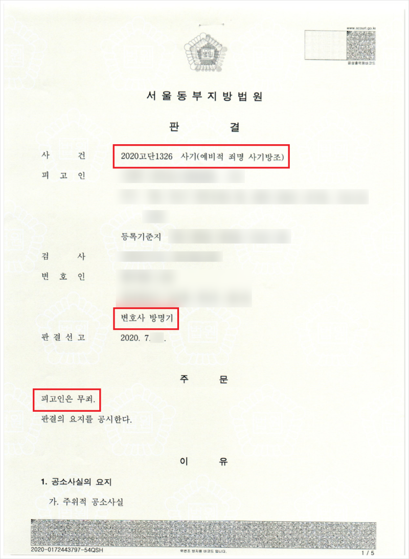결국 법원은 법률사무소 로진의 전담팀이 작성한 변론요지서의 내용을 전면적으로 인정하여, 의뢰인의 미필적 고의를 부정하였고, 의뢰인은 무죄를 선고받아 구속 상태에서 풀려날 수 있었습니다.