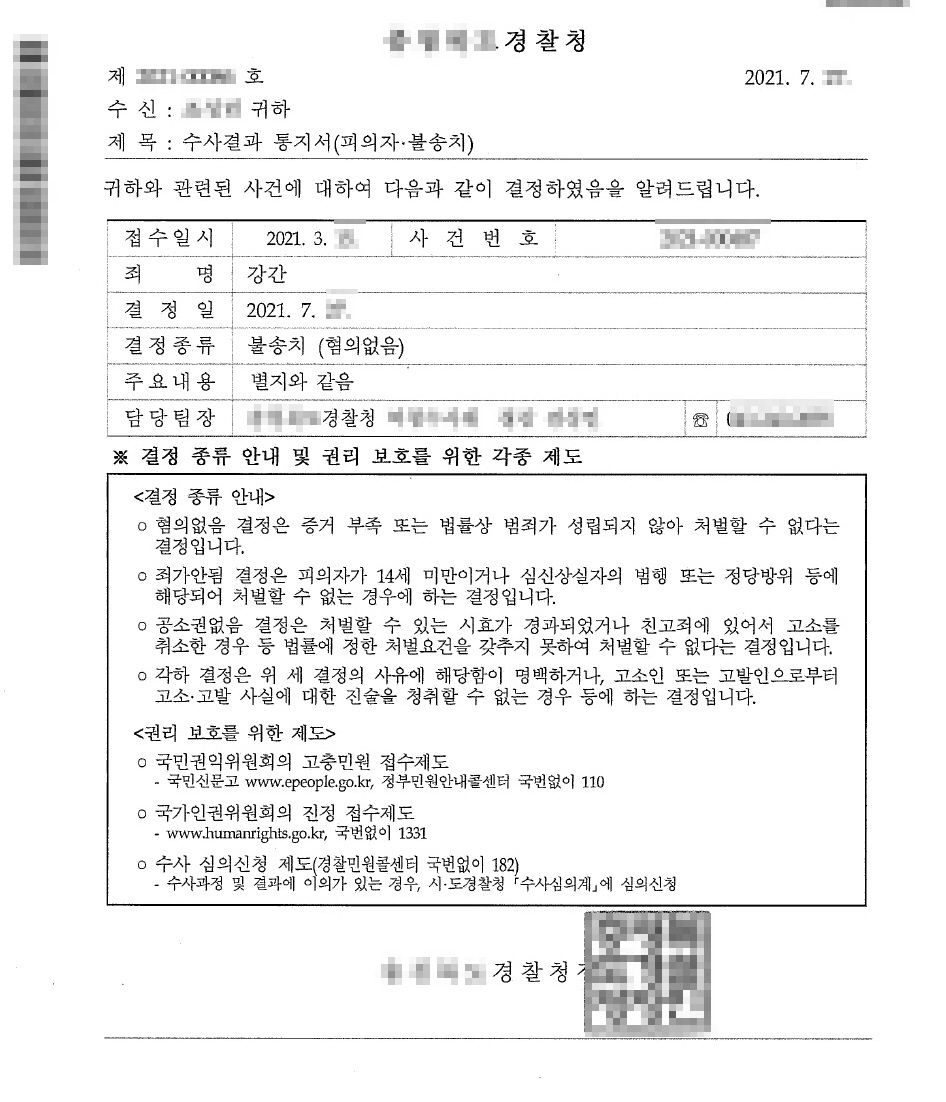 그래서 오늘은 최근에 결과가 나온 성범죄 사건 중 성폭력범죄의 처벌 등에 관한 특례법상의 장애인 강간 혐의로 입건이 되어 저를 찾아주신 의뢰인이 다행스럽게도 억울함을 밝히고 협의없음 불송치 처분을 받게된 사건에 대하여 소개를 드리고자 합니다.