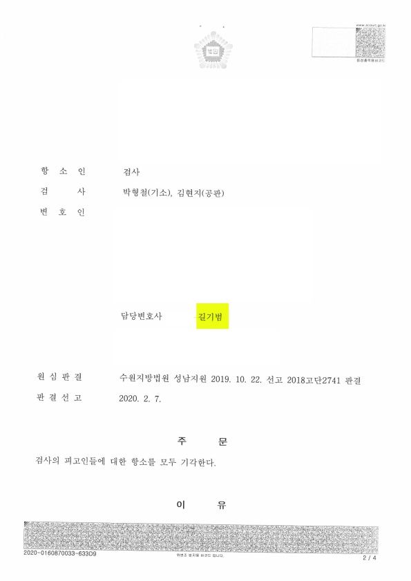뒤늦게나마 변호사를 선임하여 대응하여 A씨는 무죄를 선고받았고, 검찰이 항소하였으나 법원은 검찰의 항소를 기각하였습니다.