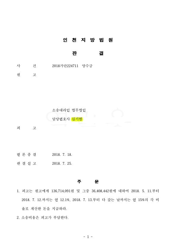 안녕하세요. 법률사무소 로진의 길기범 변호사입니다. 오늘을 양수금 청구소송을 제기하여 승소한 사례를 소개하겠습니다.