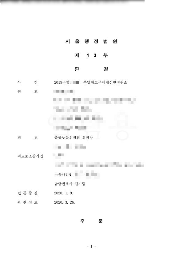 그러나 행정법원은 법률사무소 로진 노동전담팀 길기범 변호사의 주장을 받아들여