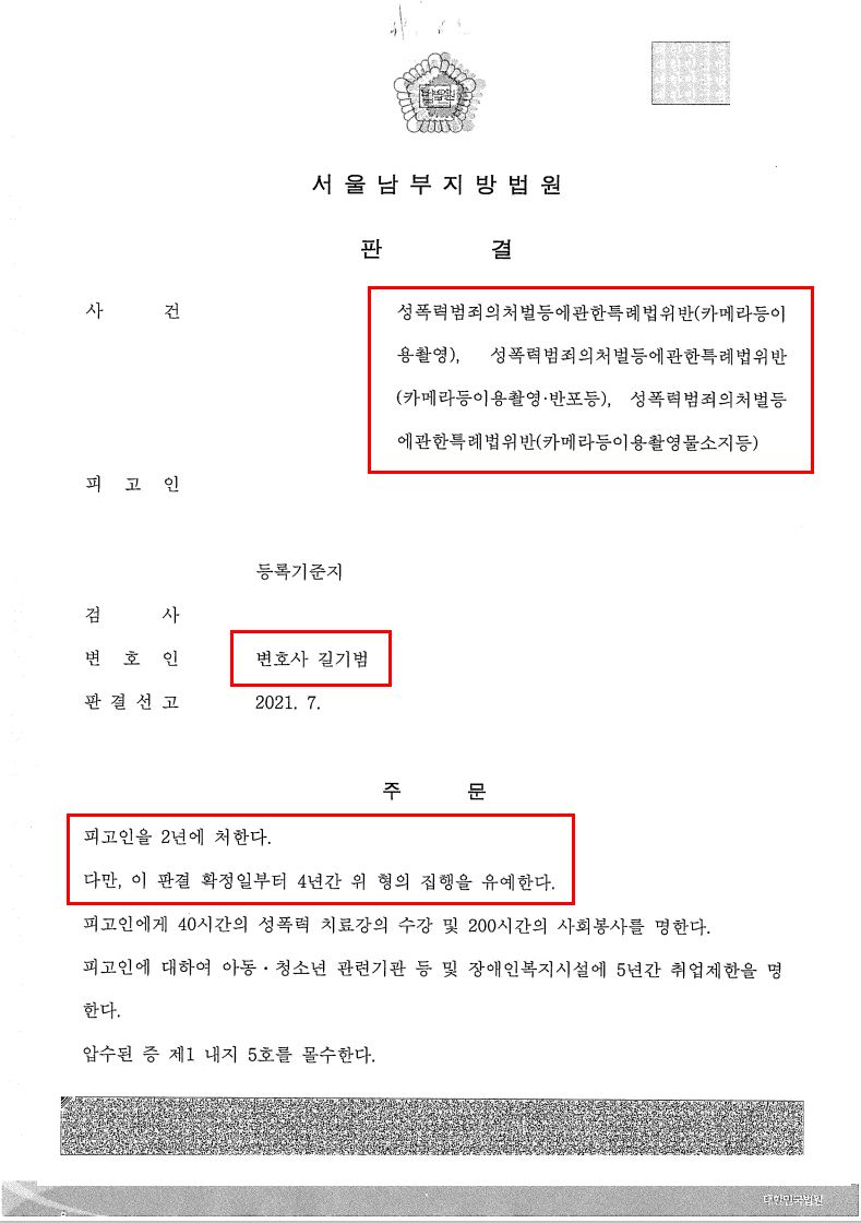 카메라등이용촬영죄·카메라등이용촬영물소지죄로 구속되었으나 집행유예 선고로 석방된 사례
