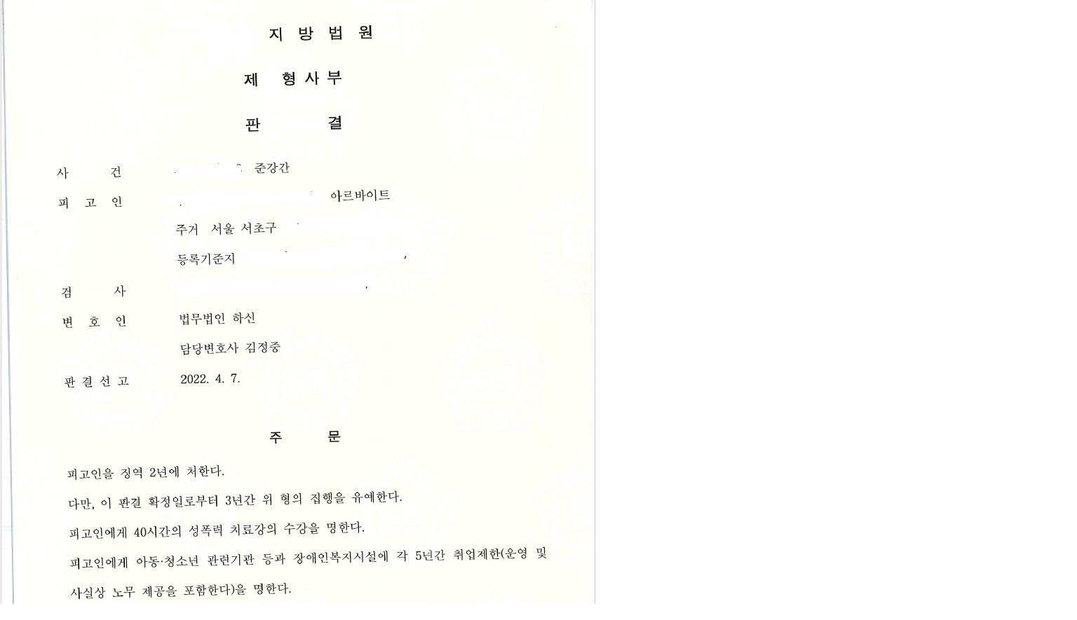 2. 그러나 저희 법무법인 하신에서는 수많은 성범죄 사건을 치른 경험과 노하우를 바탕으로 집행유예 판결을