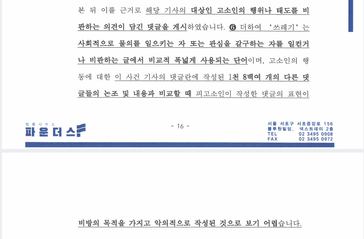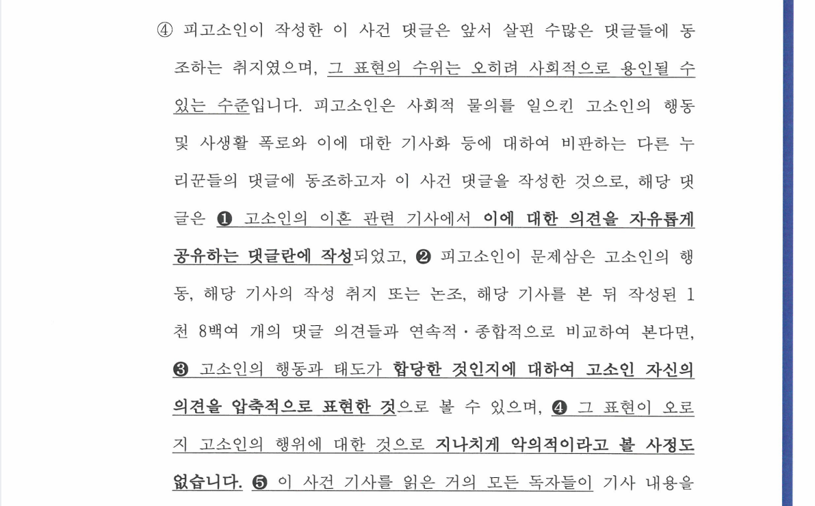 의뢰인의 댓글은 사회적 상당성을 벗어난 표현이 아니라는 점,