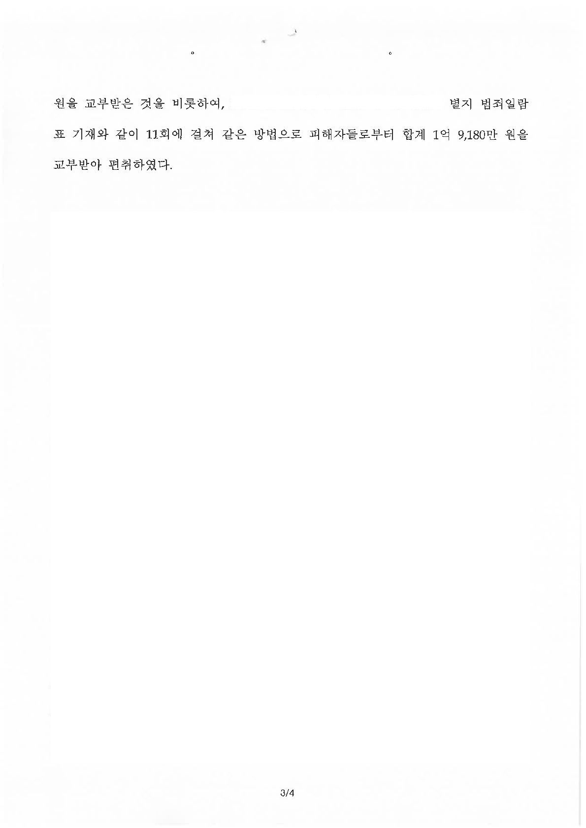 결국 피의자에게 오피스텔에 투입된 자기자본과 자본조달계획이 없었다는 점, 피해자들에게 소유권이전등기를 마칠 계획과 피해구제 계획이 불분명하였다는 점 등을 밝혀내었고, 피의자는 기소되었습니다.