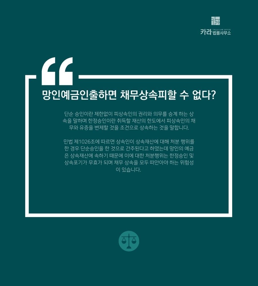 망인예금 인출하게 되면 단순승인으로 간주되어 상속포기등을 할 수 없습니다.