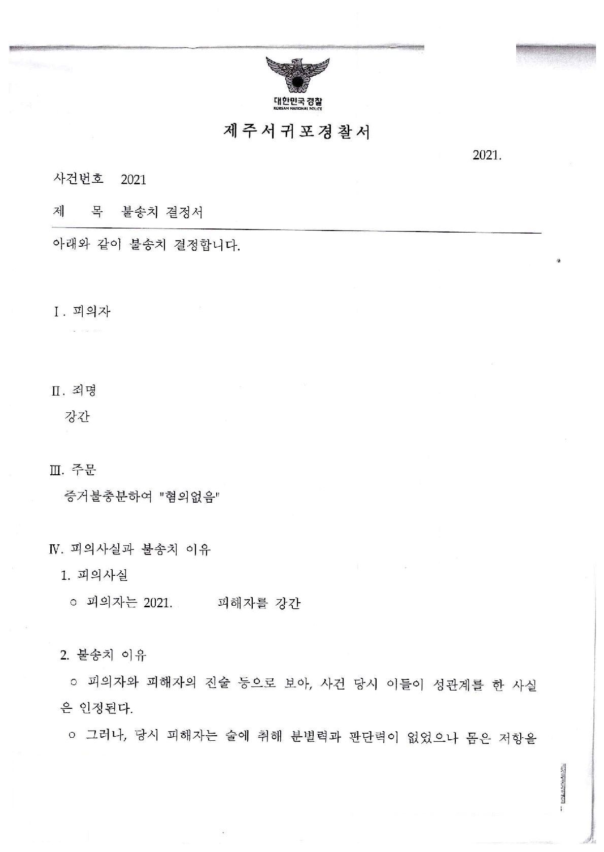 결국 경찰 단계에서 불송치결정을 받을 수 있었습니다.