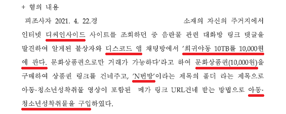 A씨는 2021. 4. 22.경 디씨인사이드를 하던 중, 음란물과 함께 링크가 게시되어 있는 글을 발견하였습니다. A씨는 호기심에 링크를 클릭하였는데, 디스코드로 연결되었고, B씨가 "희귀야동 10TB를 10,000원에 판매하고 있다. 문화상품권으로만 구매가 가능하다."라는 내용의 광고를 하고 있었습니다.
