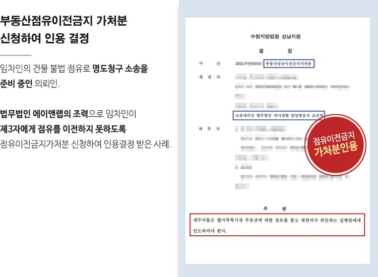 ![[민사]부동산 불법점유 명도소송 위한 점유이전금지가처분 승소](/_next/image?url=https%3A%2F%2Fd2ai3ajp99ywjy.cloudfront.net%2Fuploads%2Ftitleimage%2Foriginal%2F5c664c2841b5b909cf5ff8d8-original.jpg&w=3840&q=75)