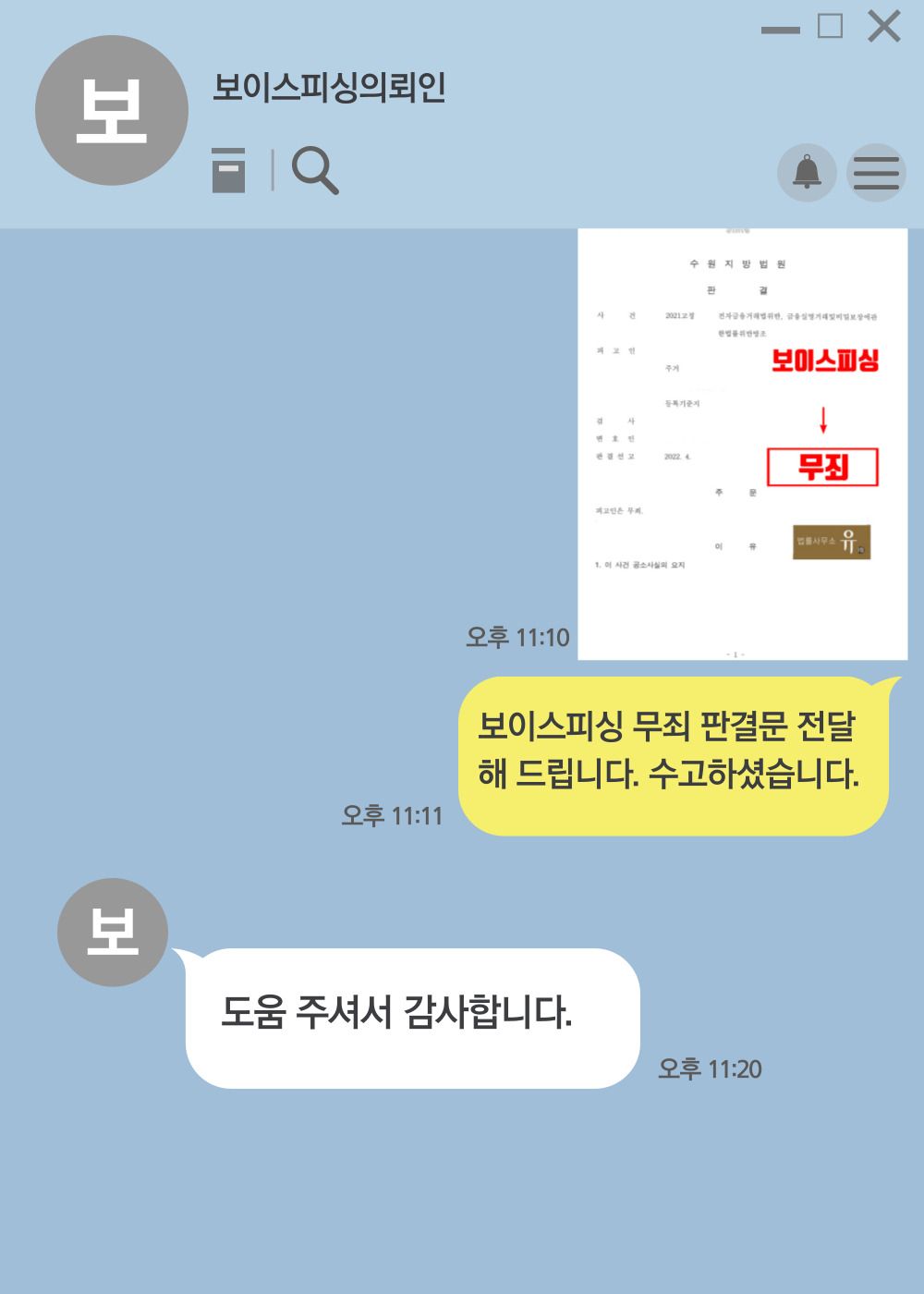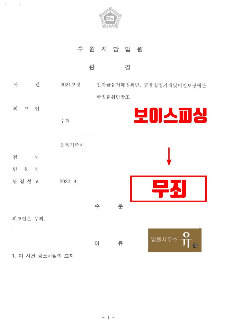 수원지방법원은 법률사무소 유(唯) 형사전문변호사가 작성하여 제출한 변론요지서 등의 내용을 대폭 수용하여 피고인(의뢰인)에게 무죄를 선고하였습니다.