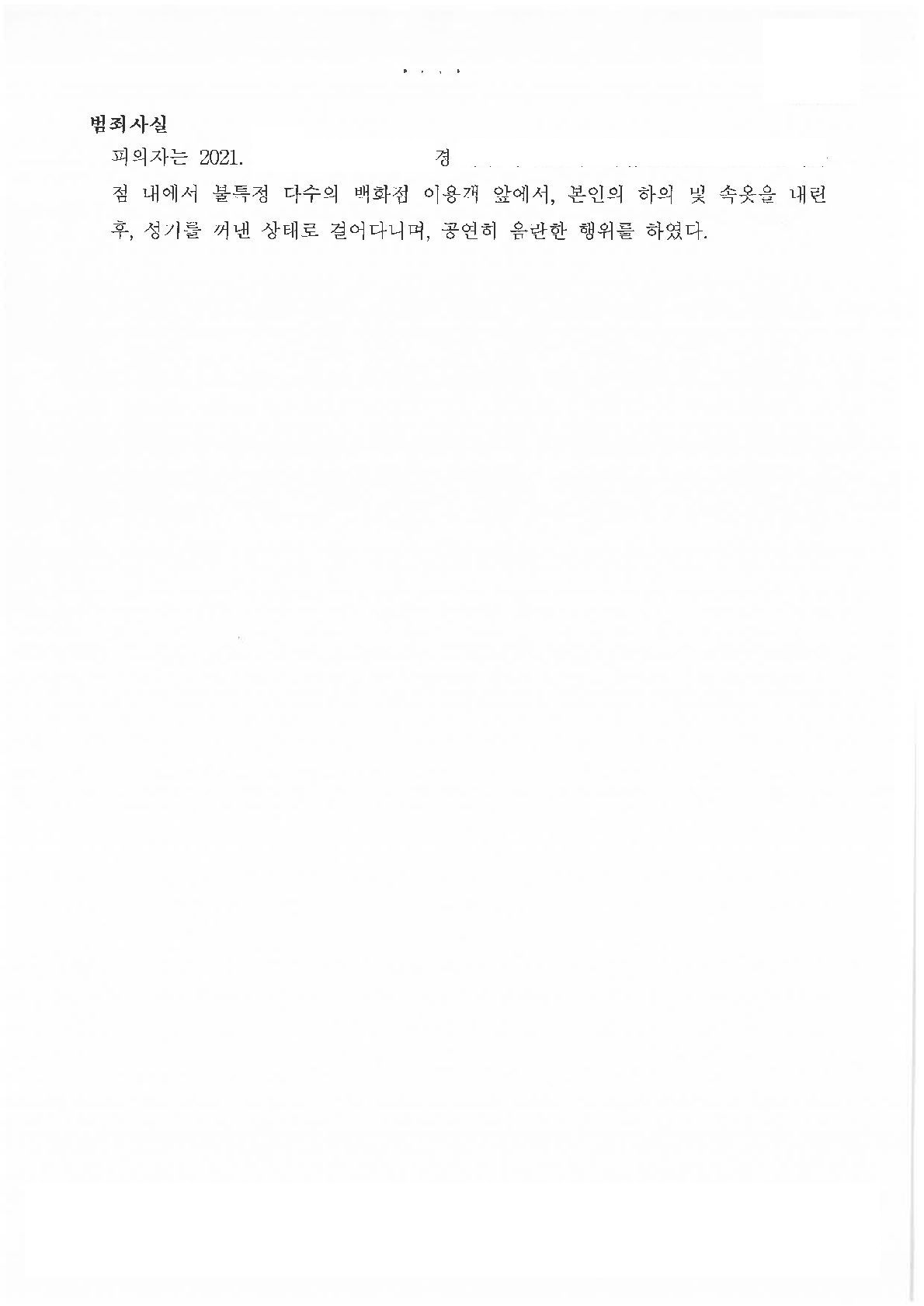 이 사건은 의뢰인이 백화점에 들어가 다수의 이용객들이 오가는 에스컬레이터 주변에서 바지와 속옷을 내린 후 성기를 꺼내고, 상의 자켓으로 이를 가리고 있다가 지나가는 이용객들에게 성기를 보이는 방식으로 공연히 음란한 행위를 하여 입건된 사건입니다.