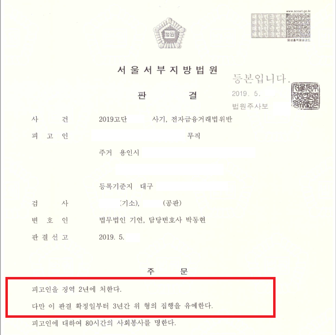 (보이스피싱 인출책, 전달책, 수거책- 집행유예)