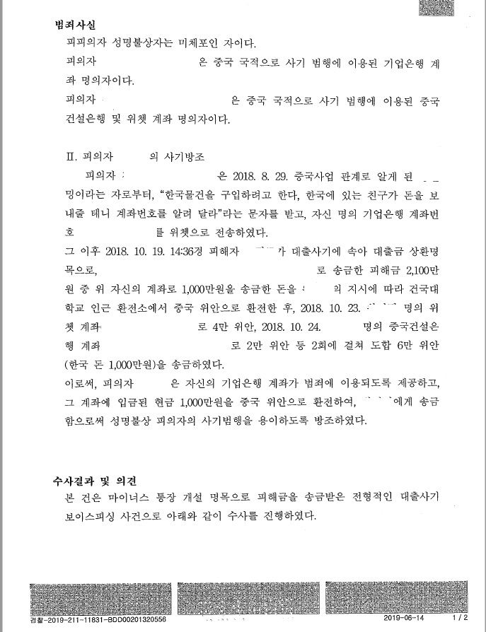 작업대출 환전 사기 보이스피싱 무혐의 무죄