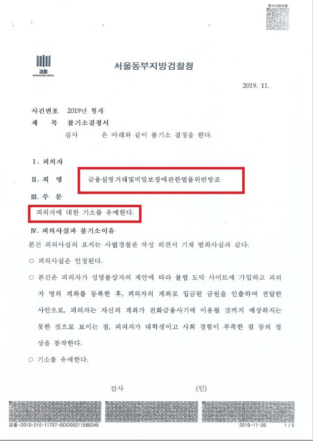 금융실명법위반 기소유예