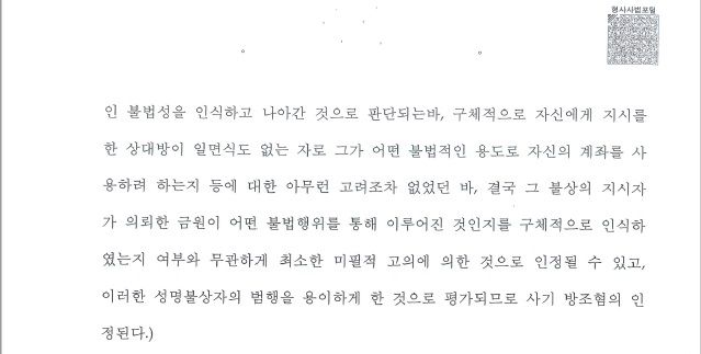 본인 계좌로 보이스피싱 돈 인출 전달하여 도운 사례