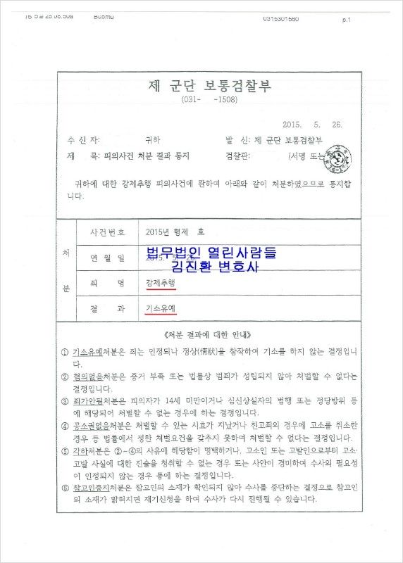 사안은 다른 경우에 비해 경미한 편이라 할 수 있으나 현장에서 만지지 않았다고 극구 부인을 하는 바람에 괘씸죄가 걸려 정식 재판도 받을 수 있는 사안이었는데요
